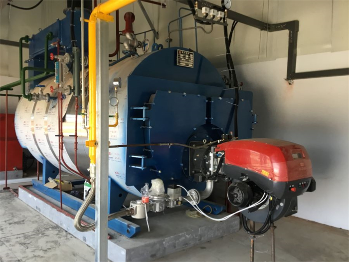 低氮燃气蒸汽锅炉,采用卧式内燃湿背式结构,波纹炉胆,螺纹烟管,锅炉的后管板不受高温烟气的直接冲刷,工作条件改善。同时,该结构使得锅炉后部散热损失大为减少。为提高热效率,该型锅炉前烟箱出口处依次布置有节能器、冷凝器,其节能**。本锅炉具有高、低水位报警功能,低水位联锁保护功能和过压联锁保护功能。为了有效地监视和控制水位及压力,本锅炉配备有水位计、电极式水位控制报警器,还配备有压力表及压力控制器,使锅炉具有高、低水位报警/低水位联锁保护和蒸汽压力过压联锁保护,锅炉自动点火、燃烧器火力自动调节和熄火保护,保证锅炉的**运行。该产品的燃料从燃烧器喷出,被高压电子点火点燃,在炉胆内微正压燃烧,燃烬后的高温烟气由后部烟室转弯180°进入第二回程,由前烟箱处转弯180°进入节能器和冷凝器由烟囱排入大气。前烟箱采用整体式双开门设置,烟箱门双层密封,该形式整体性好,美观、大方,检修时开启也很轻便。烟囱高度按8米配置出厂,用户应按所在地环保部门批准的环境影响报告书的要求确定实际高度,但不得低于8米。