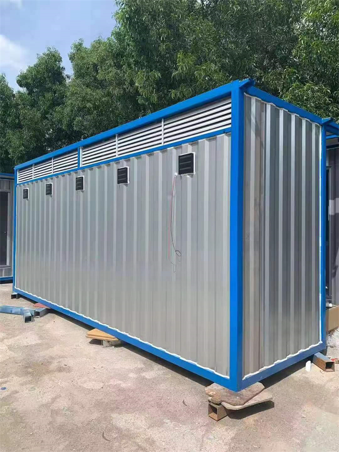 产品名称:豪华连体移动厕所(气冲座式)型号:YJDT-039、040产品说明房体规格长2400mm;宽2000mm;高3000mm;(2厕位)长4000mm;宽2000mm;高3000mm;(3厕位)占地面积4.8平方;总重量2000KG;(2厕位)占地面积8平方;总重量3000KG;(3厕位)排污方式暂存控制方式手动水冲电源电器220V16A航插,外接电源至电箱系统,磁性接近开关,顶部设照明LED灯主要设施304不锈钢蹲便器、衣帽钩、手纸盒、排风扇、扶手、一体式台盆、多功能化妆镜标志牌男女通用不锈钢标志通风前门设置百叶窗,后墙安装排风扇,使厕内空气对流门304不锈钢包边门(防水、防晒、隔热保温、耐腐蚀)装卸方式支持5吨铲车,8吨吊车。