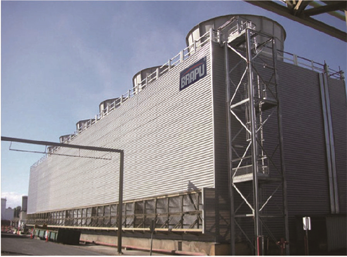 BPK-IN工业型却塔系列产品根据德国冷却塔标准制造,靠机械强制通风进行的冷却塔。通过蒸发作用来散去工业上或制冷空调中产生的废热的壹种设备,燥(低焓值)的空气经过风机的抽动后,自进风网处进入冷却塔内;饱和蒸汽分压力大的高温水分子向压力低的空气流动,湿热(高焓值)的水自播水系统洒入塔内。当水滴和空气接触时,壹方面由于空气与不的直接传热,另壹方面由于水蒸汽表面和空气之间存在压力差,在压力的作用下产生蒸发现象,带到目前为走蒸发潜热,将水中的热量带走即蒸发传热,从而达到降温之目的。工业型冷却塔单塔体处理水量超过1000m3/h,巴普通过设备整体和各部件优化设计,实现了气流流场流线化,低能耗运行,超低漂水损失。